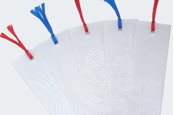 | 特徴 | 点字の技術を活かしたエンボス加工が一番映える文房具です。1枚1枚手刷りで印刷しているので、お礼の気持ちをお渡しするときにピッタリです! |