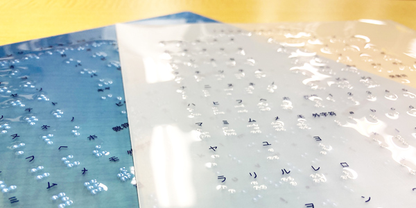 全国の視覚特別支援学校(盲学校)で使用されている点字教科書の編集・製作・印刷を当センターで行っています。その技術を活かした自主製品として、エンボス加工が特徴的な文房具を販売しています。